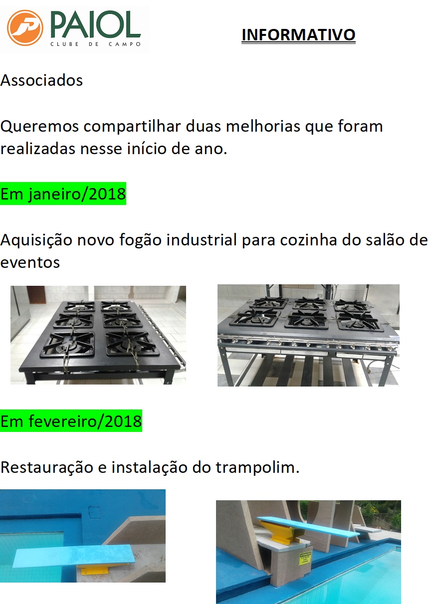 INFORMATIVO - AQUISIÇÕES E MELHORIAS
