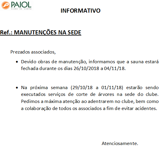 INFORMATIVO MANUTENÇÃO NA SEDE