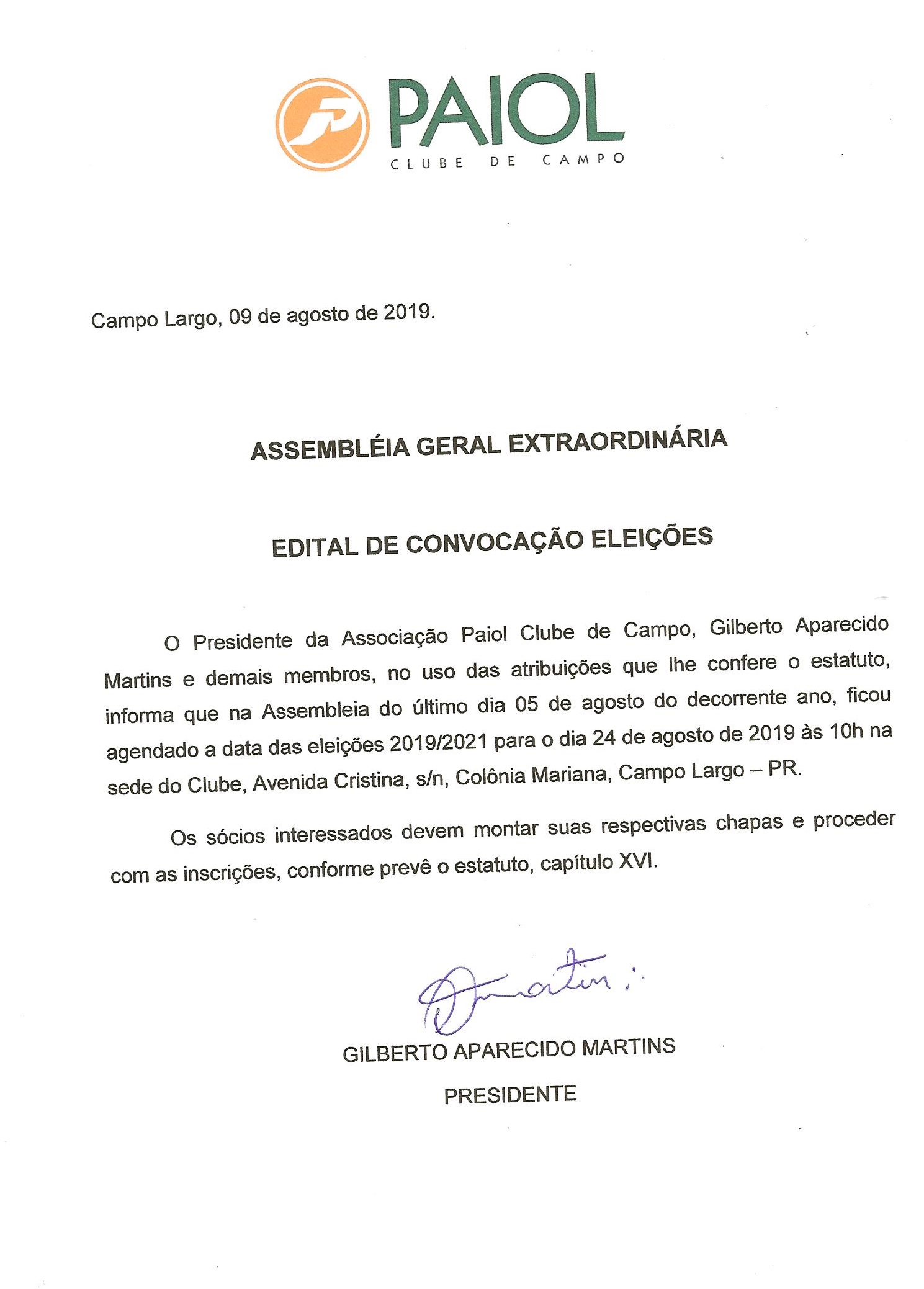 CONVOCAÇÃO ELEIÇÕES 2019/2021 DIA 24.08.2019