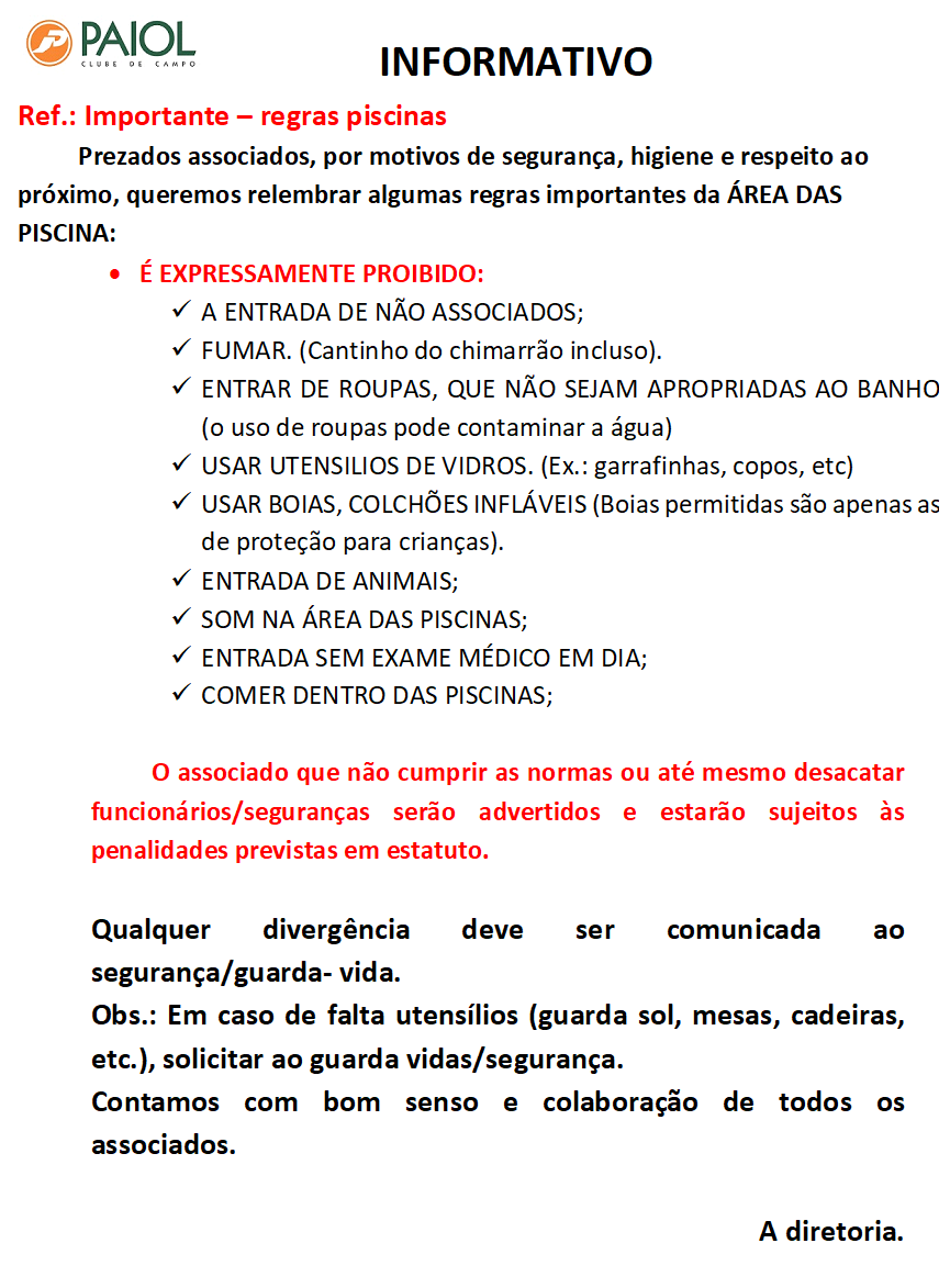 REGRAS DAS PISCINAS