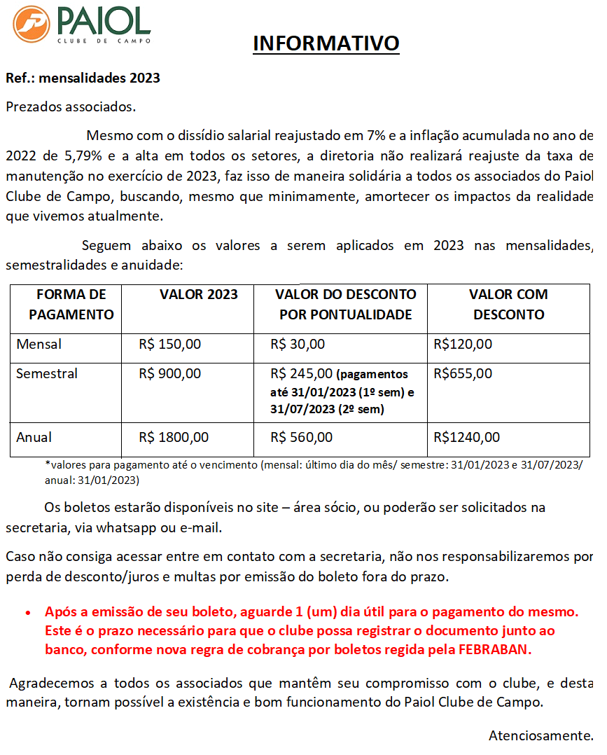 TAXA DE MANUTENÇÃO 2023!