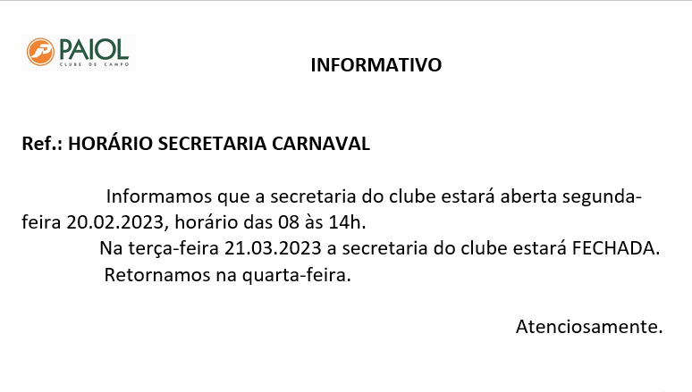 HORÁRIO SECRETARIA CARNAVAL