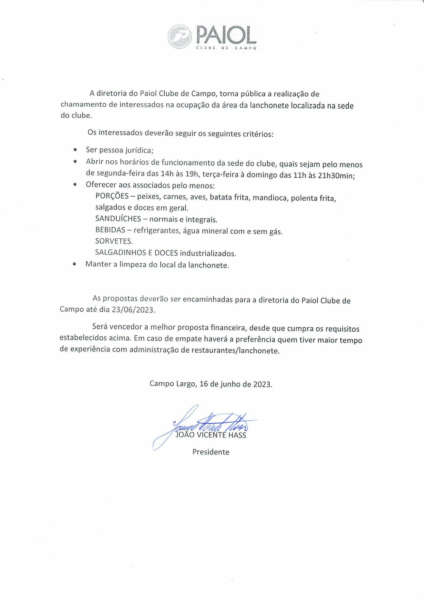 CHAMAMENTO PARA OCUPAÇÃO DA LANCHONETE