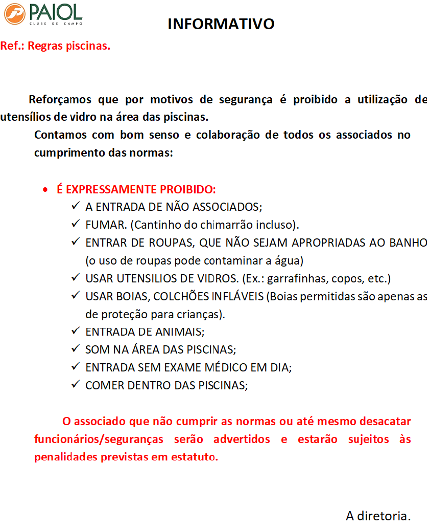 REGRAS PISCINAS