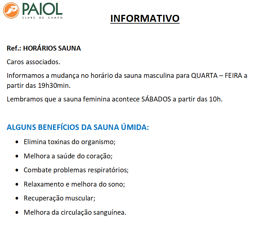 MUDANÇA DIA SAUNA MASCULINA