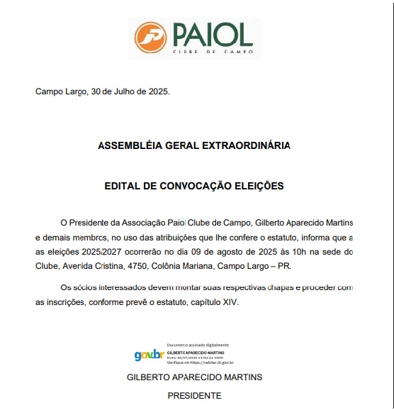 CONVOCAÇÃO PARA ELEIÇÕES DIRETORIA 2025/2027