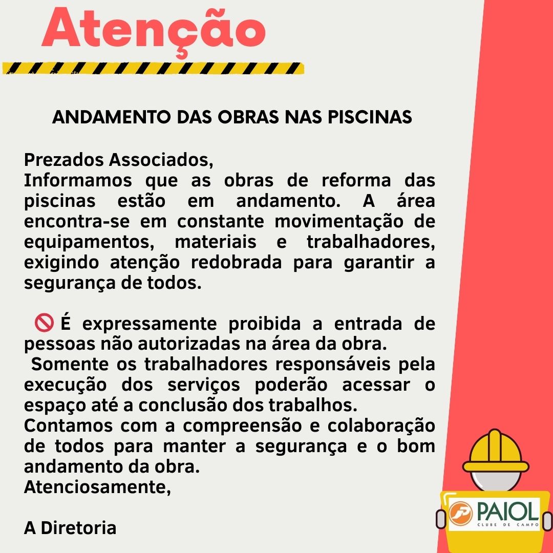 PISCINAS EM REFORMA - PROIBIDA ENTRADA